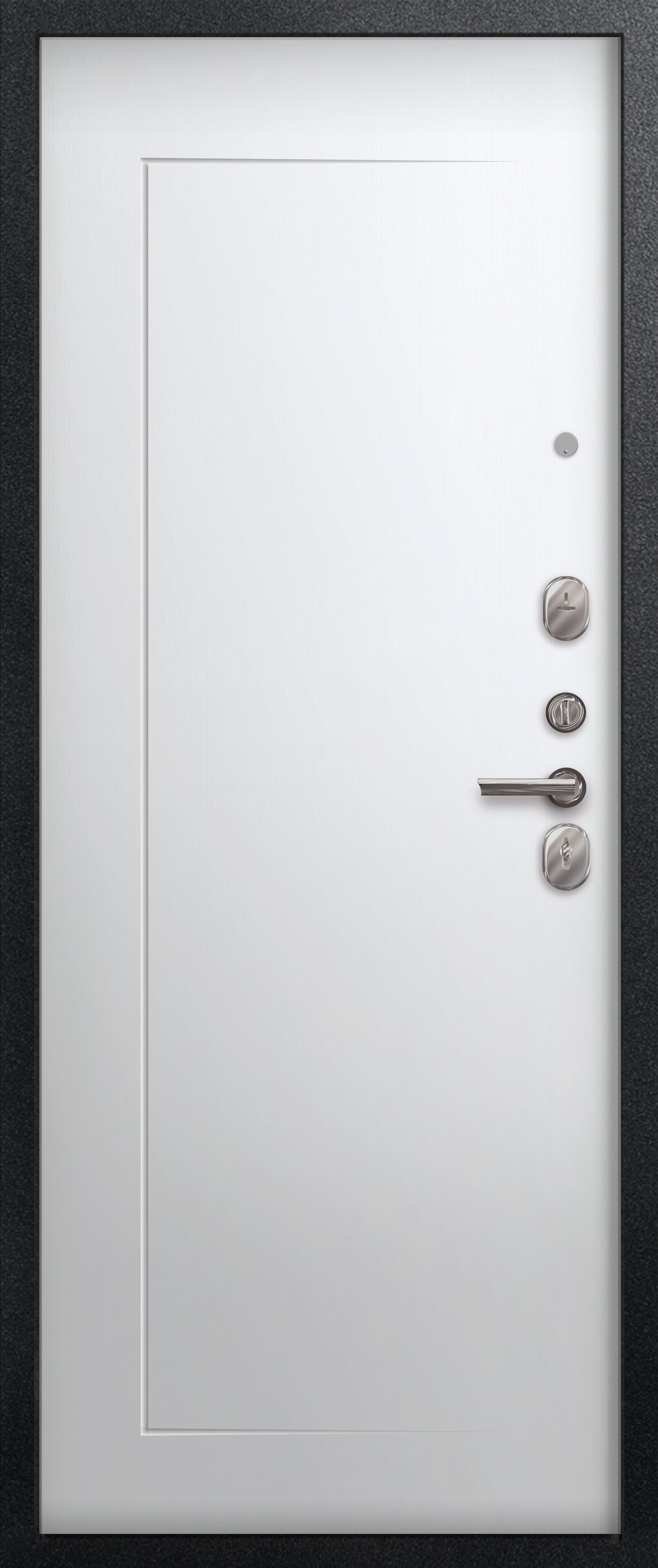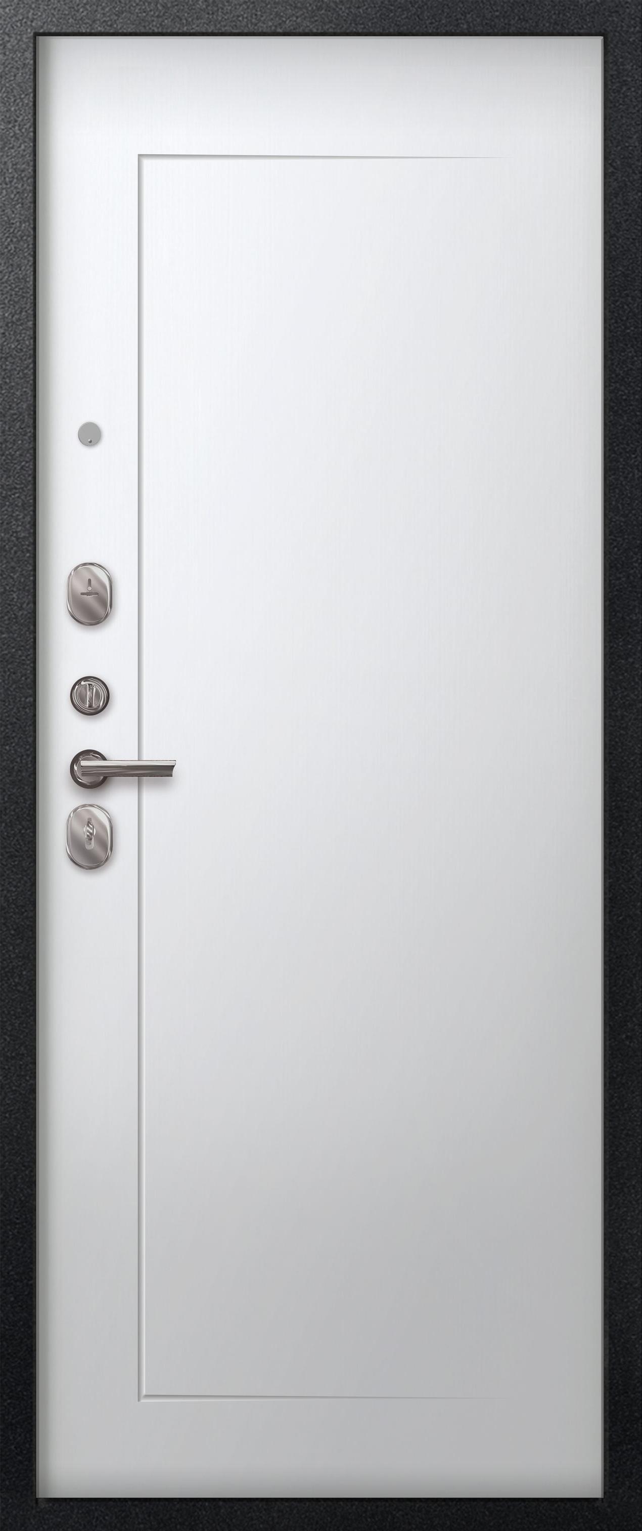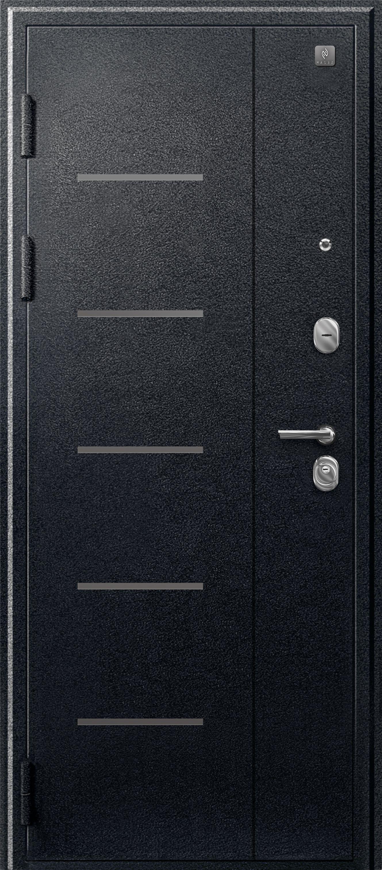 Три контура уплотнения защищают квартиру от постороннего шума и сквозняков. Сталь толщиной 1 мм обеспечивает достаточную прочность при умеренной массе готового изделия. Для обеспечения дополнительной жесткости конструкции используется технологический вертикальный гиб(штамп) с внешней стороны полотна. Наполнитель двери – пенополистирол.